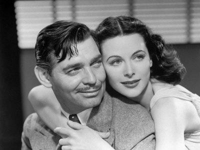 Hedy Lamarr, pendurada no pescoço de Clark Gable, nos tempos áureos da M-G-M.
