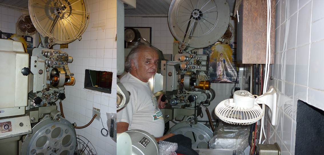 O Ivo conseguiu recuperar os Prevost de 70 mm. Inicialmente, ele os instalou em uma de suas cabines. Eu estive lá e constatei o ótimo estados daqueles projetores. Abaixo, duas fotos que eu tirei, durante a projeção que eu assisti: