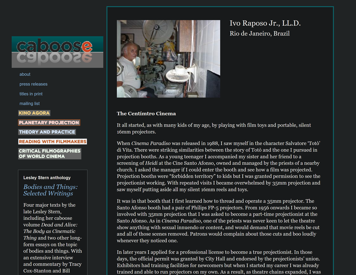 A foto da direita foi enviada para o projeto da Caboose, a respeito de profissionais que foram outrora operadores de cinema, chamado de Planetary Projection: